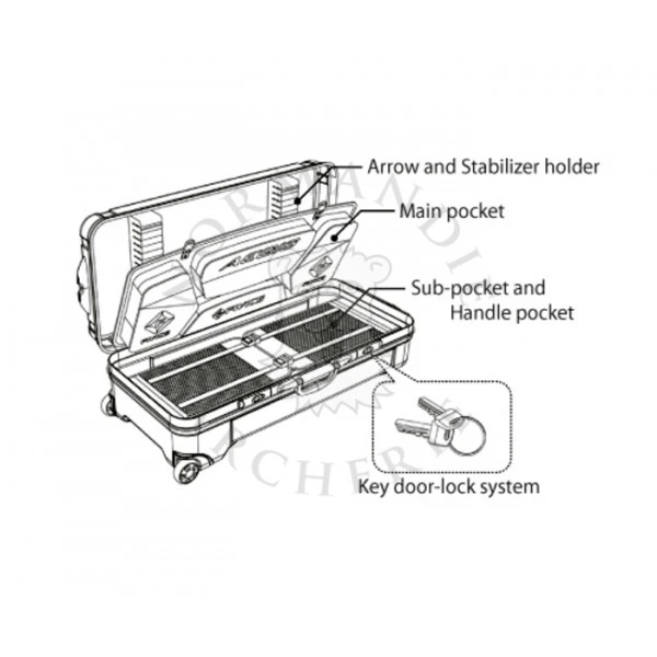 - Valise rigide pour arcs démontables avec roulettes.